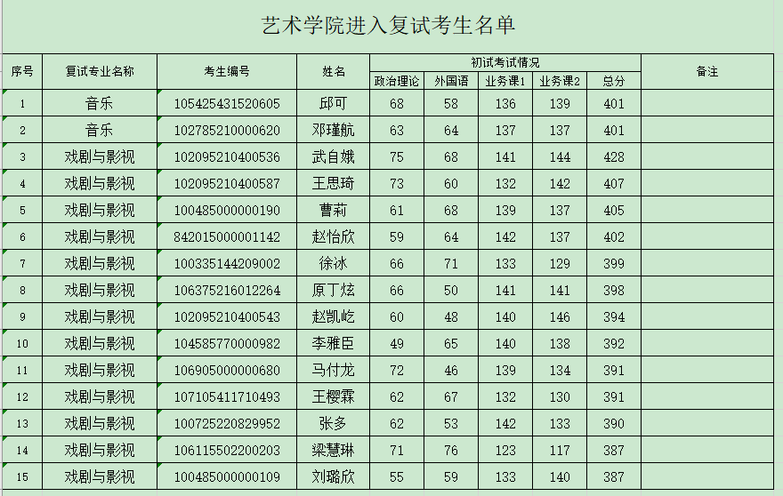 二、本轮次各调剂专业进入复试的考生名单